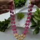 2 Layer Quartz Necklace With Antique Gold Beads, Dark Pink
