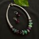 Agate Rondelle With German Silver Trunks Necklace, Greenish Purple