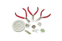 Beginners usually start with a few basic tools such as round nose pliers, chain nose pliers, wire cutters, elastic thread, and jewelry wire.