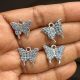 Rhinestone Charms, Butterfly,Silver Finish,Blue,Pack Of 4 Pieces