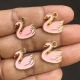Metal Enamel Charms,Swan,Pink,Gold Finishing, Pack Of 4 Pieces