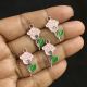 Metal Enamel Charms,Rose,Pink, Pack Of 4 Pieces