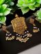 Oxidised pendant with crystals and Loreals and matching earrings , Gold