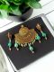 Oxidised pendant with crystals and Coral Tulip and matching earrings , Gold