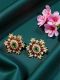 Cz Stone Flower Earrings, Pink & Green