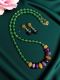 Quartz Necklace with Onyx Beads in Antique Gold Finish Necklace with Earrings