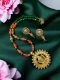 Durga ma pendant Crystal necklaces with jhumkas ,Red and Green