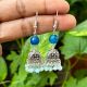 German Silver (Box) Jhumkas With Semi Precious Beads, Blue