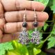 German Silver (Box) Jhumkas With Semi Precious Beads, Dark Wine