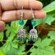 German Silver (Box) Jhumkas With Semi Precious Beads, Green