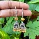 German Silver (Box) Jhumkas With Semi Precious Beads, Mustard Brown