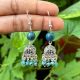 German Silver (Box) Jhumkas With Semi Precious Beads, Peacock Blue