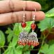 German Silver (Box) Jhumkas With Semi Precious Beads, Reddish Orange