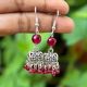 German Silver (Box) Jhumkas With Semi Precious Beads, Ruby Pink
