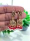 Antique Gold Jhumkas with Crystal and Pearl,Red
