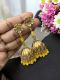 Antique Gold Jhumkas with Agate Beads Yellow