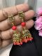 Antique Gold Jhumkas with Crystal Orange