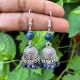 German Silver Jhumkas With Semi Precious Beads, Blue