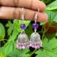 German Silver Jhumkas With Semi Precious Beads, Lavender