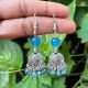 German Silver Jhumkas With Semi Precious Beads, Light Blue