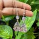German Silver (Triangle) Jhumkas With Semi Precious Beads, Light Lavender