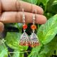 German Silver (Triangle) Jhumkas With Semi Precious Beads, Orange