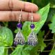 German Silver (Triangle) Jhumkas With Semi Precious Beads, Violet