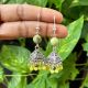 German Silver (Triangle) Jhumkas With Semi Precious Beads, Yellow