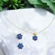 AD Flower Pendant In Invisible Wire with Earrings ,Royal Blue