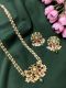 Navrabeads High Quality Jadau Replica Kemp Pendant Set with Pearl Chain & Earrings – Green and Pink ,20 Inch Temple Jewellery | Bridal, Wedding & Festive Wear