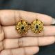 Antique Gold Finish Flower Earrings, Green