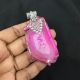 Natural Agate Slice Pendant, Silver Finish,Pink