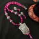 Natural Square Agate Necklace With Oxidised Silver Pendant, Pink