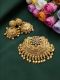 Shop our temple jewellery style pendant set with matching earrings (antique gold finish, pink colour). Features traditional ethnic design with intricate detailing. Perfect for jewellery making, DIY crafts, necklaces, earrings, bridal sets & reselling.