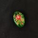 Navrabeads Japanese Tablet Beads 31x20mm Single Piece | Green with Pink Rose Design Flat Bead for Jewellery Making, Necklace Pendants & DIY Crafts