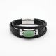 Shop our men’s green aventurine gemstone bracelet with black faux leather (single piece). Features rectangular bead design with slide lock and safety clasp for secure fit. Perfect for daily wear, gifting, casual styling & reselling.