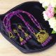 Printed glass beads necklace with oxidised gold pendants,Purple