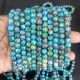 Printed Glass Beads,Sea Blue with Gold Foiled ,30"(100 Beads Approx)