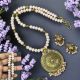 Opaque Crystals with Antique Gold pendant Necklace with Jhumkas Light Biege