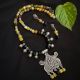 Onyx and Kohlapuri charms in oxidised silver pendant Neklace