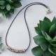 Tube pendant with black leather cord with lobster clasp and an adjustable chain at the finish