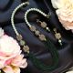 Dark green seed beads with Swarovski replica pista green pearls with Victorian spacers 22 inches