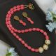 Glass Beads Cylinder Necklace with Earrings,Pink