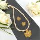 Matt finish Lakshmi Pendant with peach fresh water pearls with Earrings