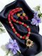 Synthetic coral carved beads with Victorian pendant with matching earrings , Red