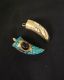 Tibetan Horn Shaped Pendant, Sea Green And Black Stone With Gold Designs