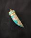 Tibetan Horn Shaped Pendant, Sea Green And Grey With Gold Designs