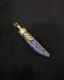 Tibetan Horn Shaped Pendant, Blue And Black With Gold Designs