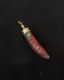 Tibetan Horn Shaped Pendant, Red With Gold Designs
