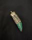 Tibetan Horn Shaped Pendant, Green With Gold Designs